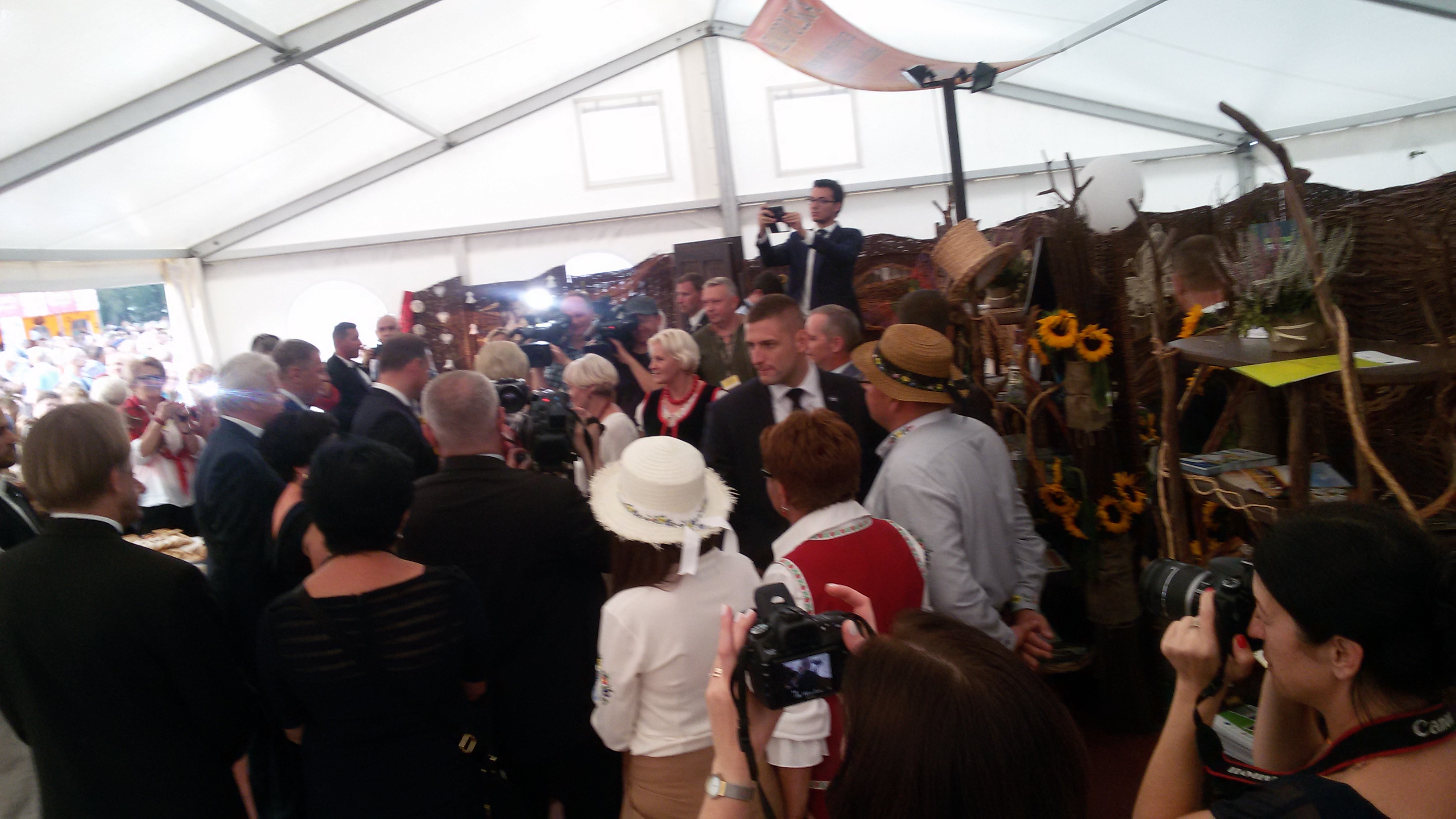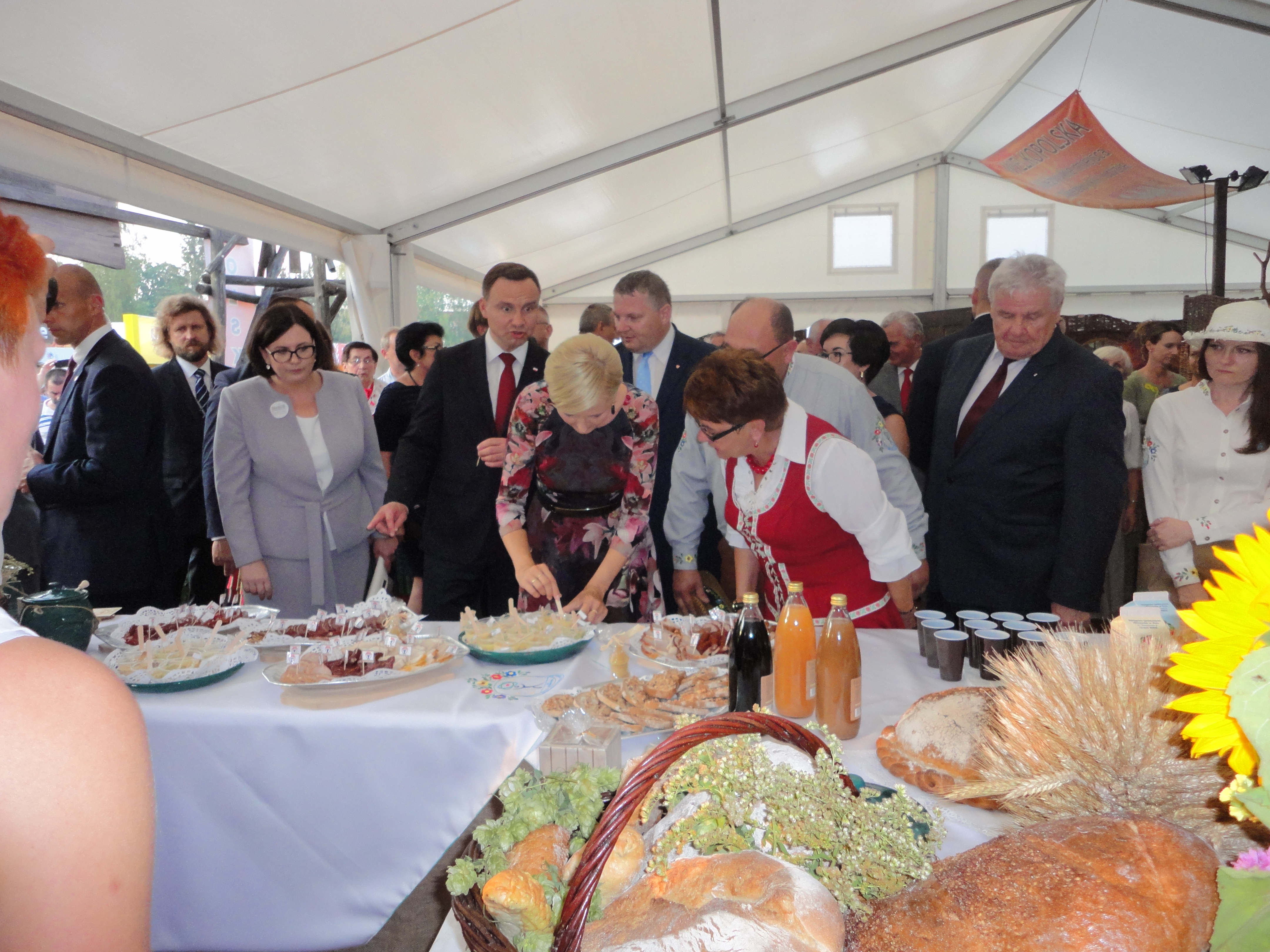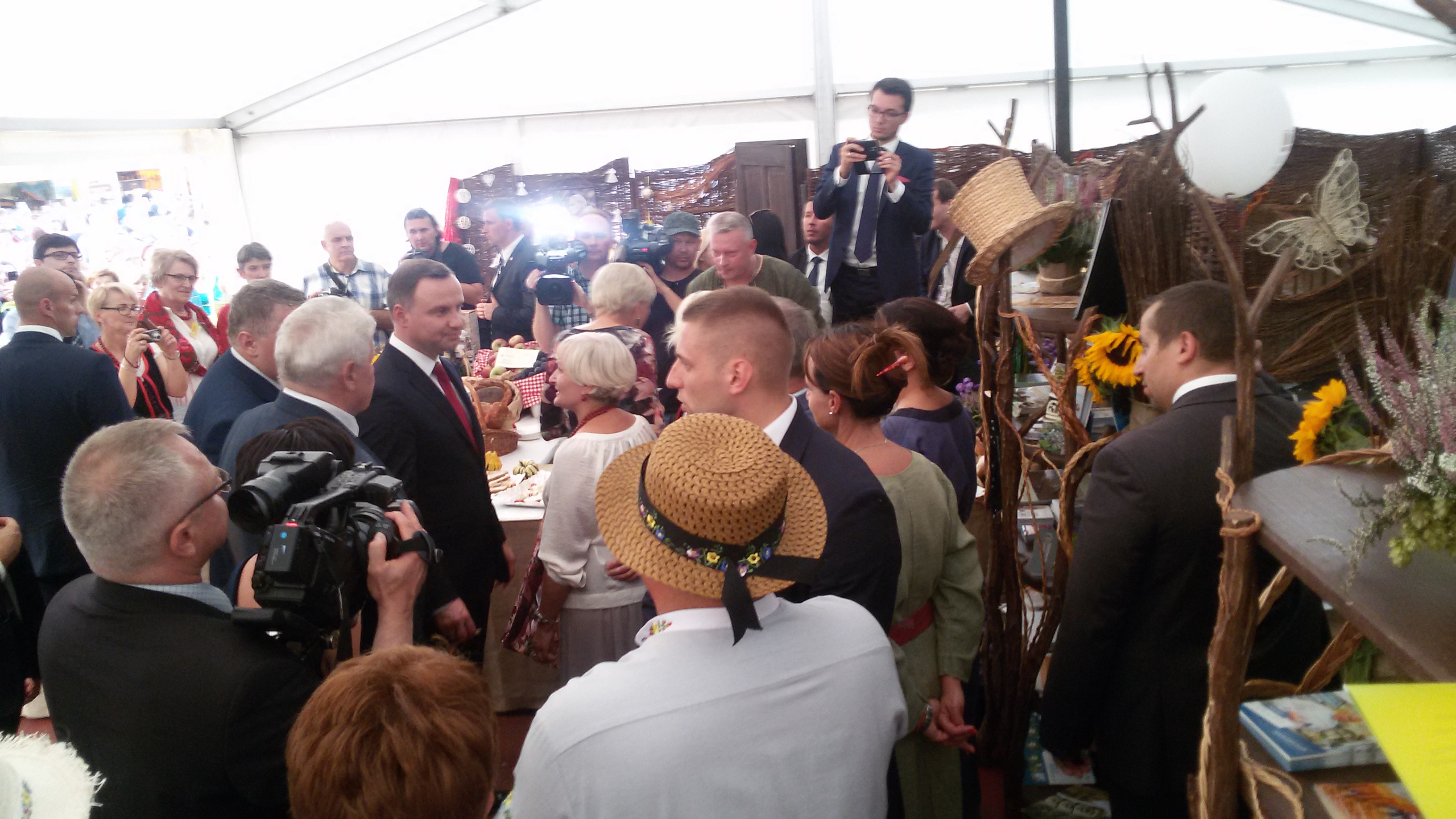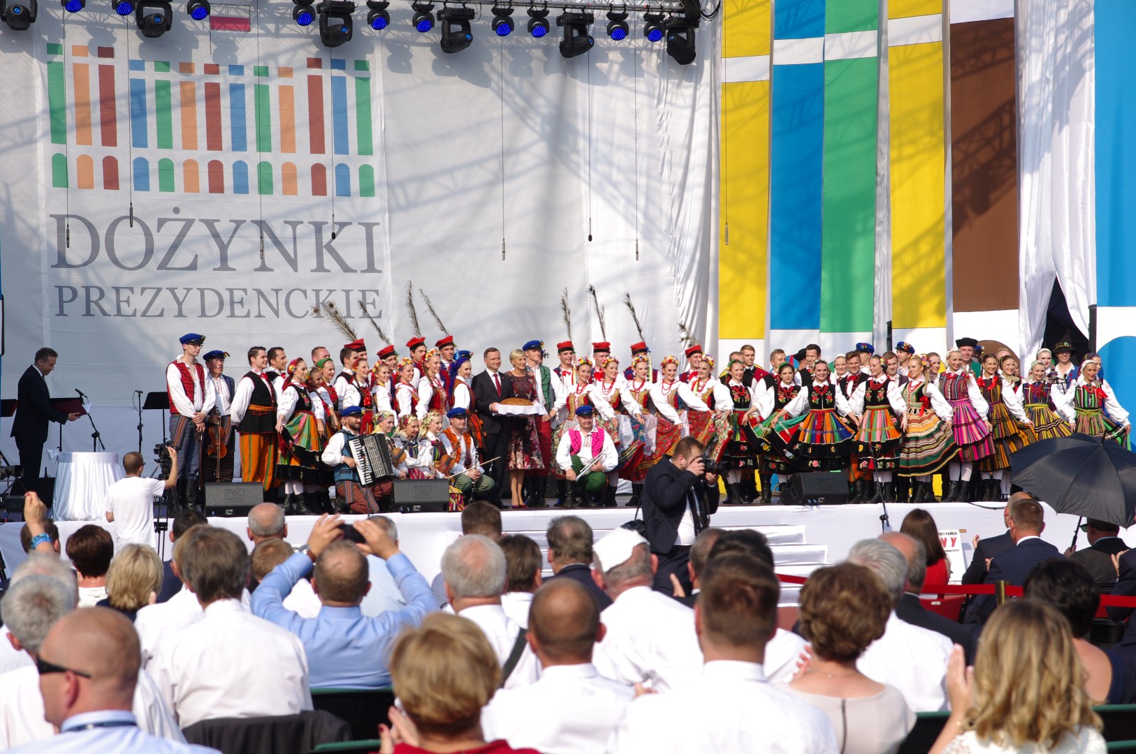 Na stadionie ceremoniał dożynkowy przygotował Zespół Pieśni i Tańca Łany, podczas niego starostowie dożynek przekazali prezydentowi chleb wypieczony z mąki pochodzących z ziaren z tegorocznych zbiorów.