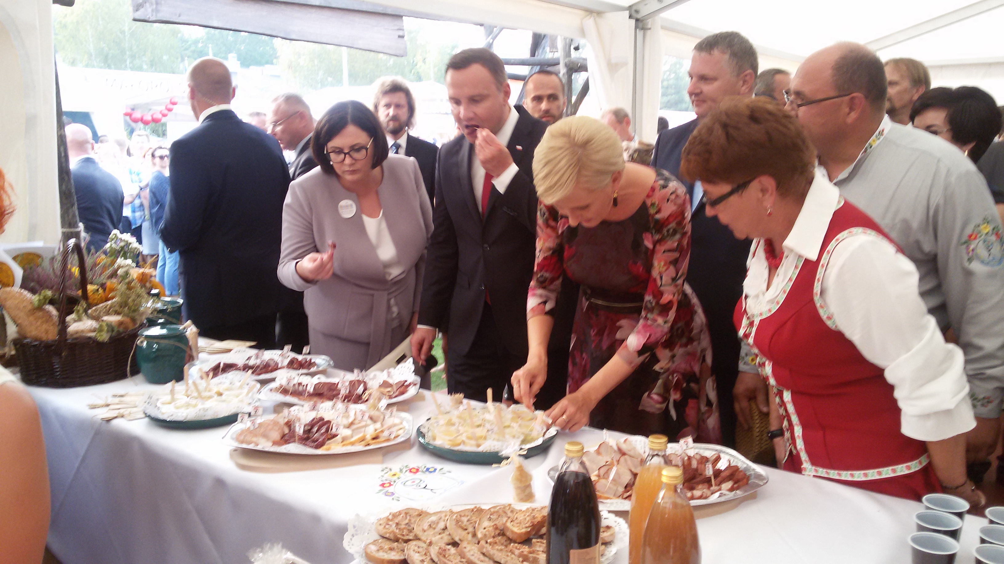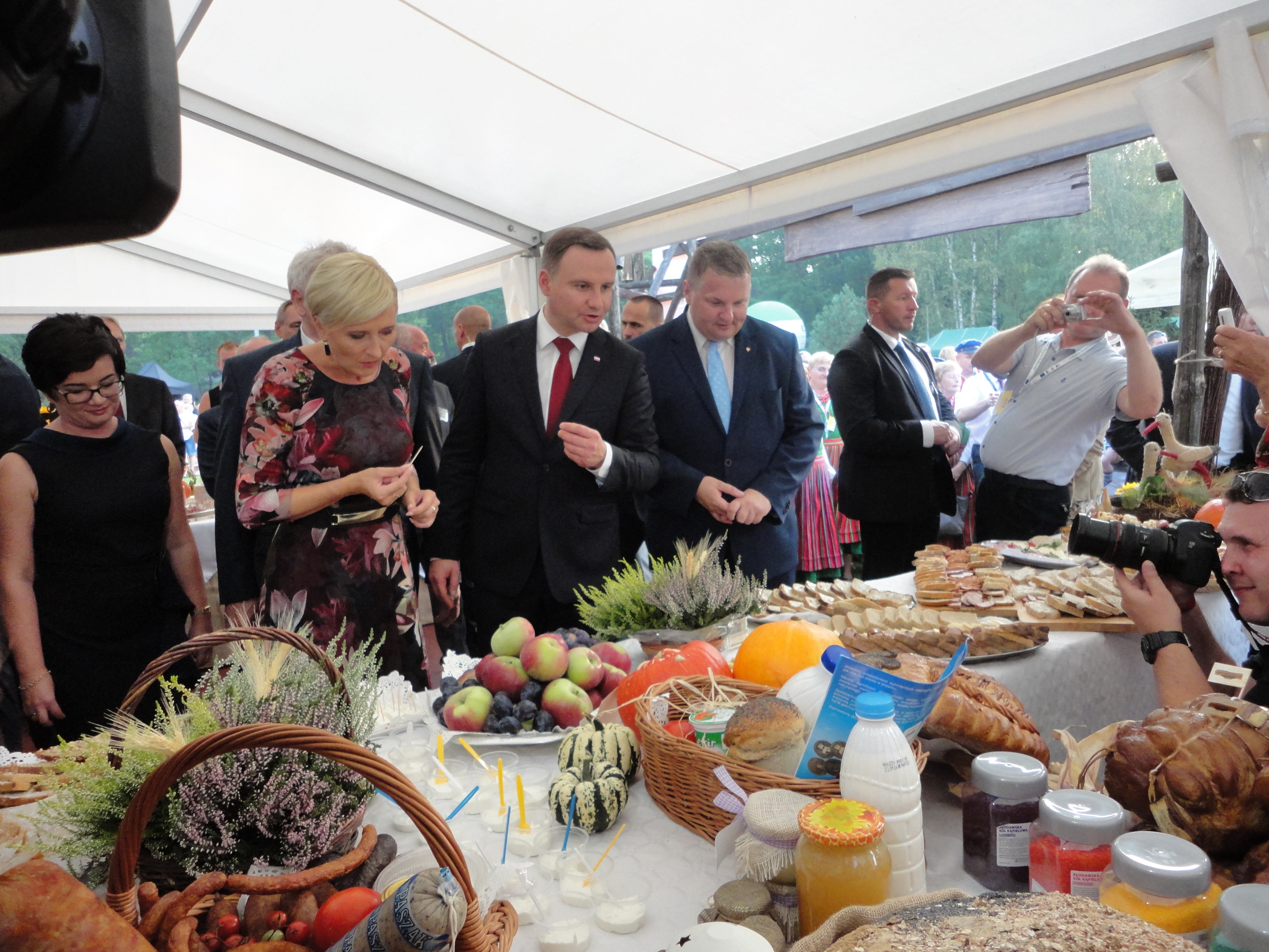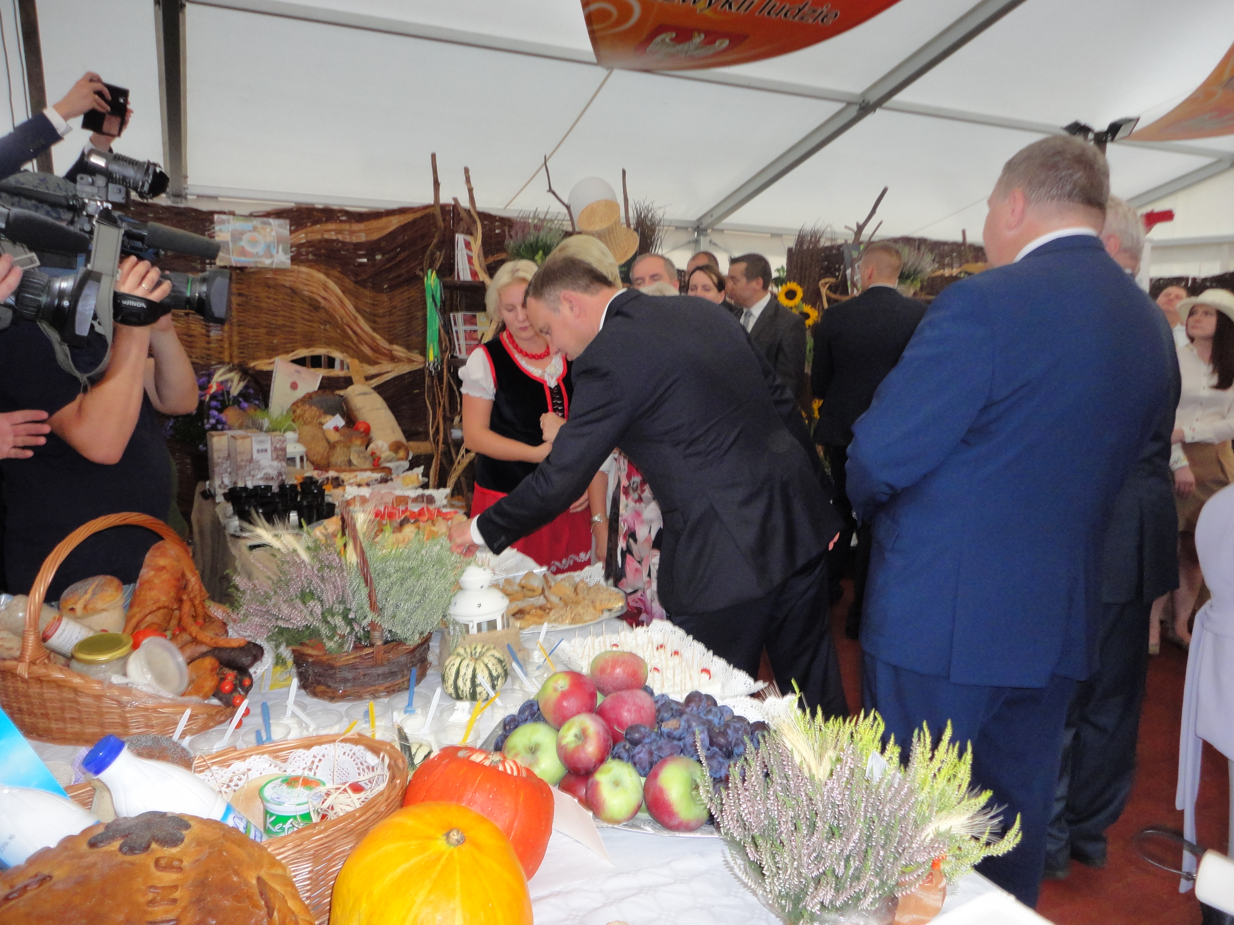 Na stadionie ceremoniał dożynkowy przygotował Zespół Pieśni i Tańca Łany, podczas niego starostowie dożynek przekazali prezydentowi chleb wypieczony z mąki pochodzących z ziaren z tegorocznych zbiorów.