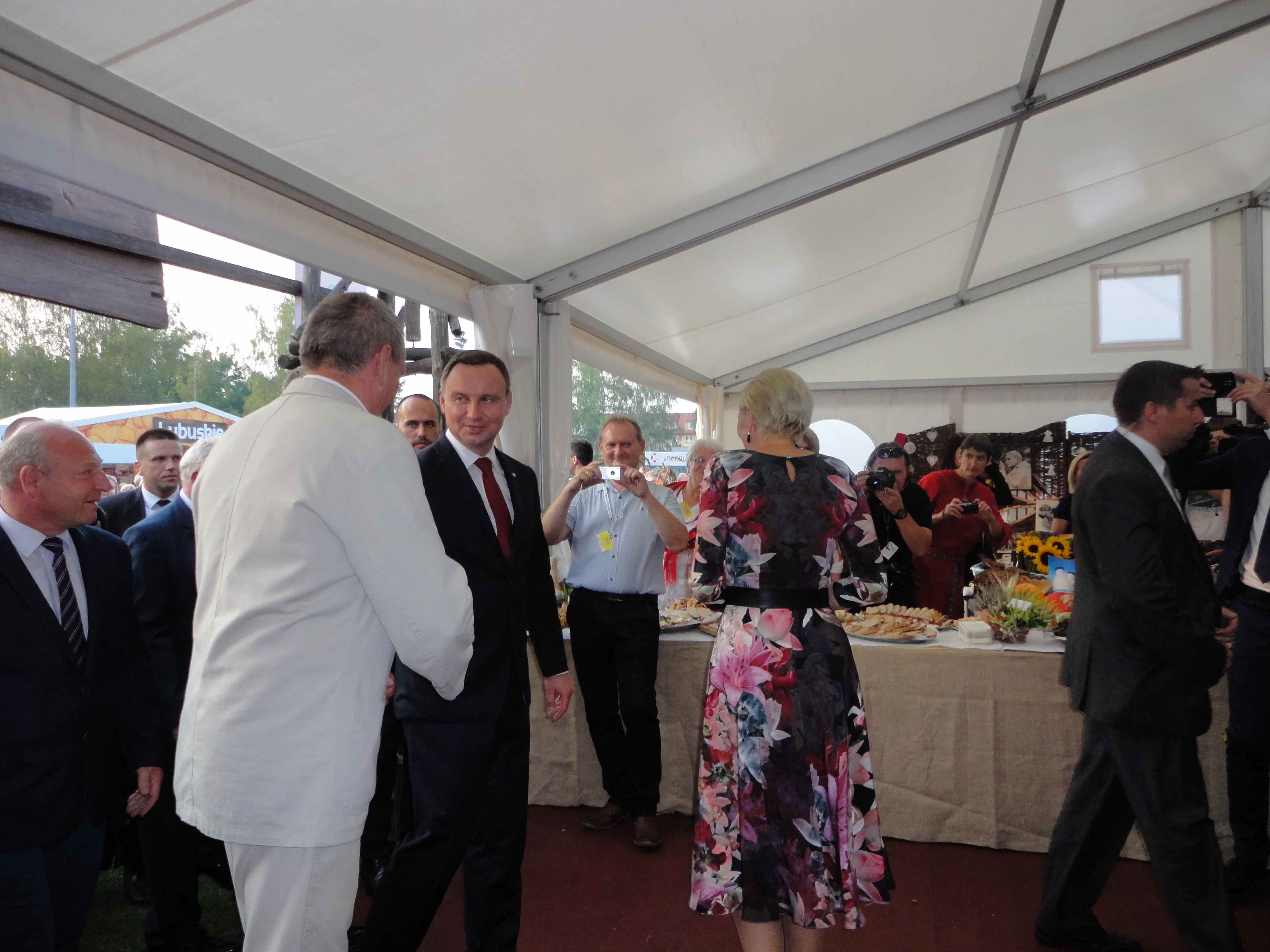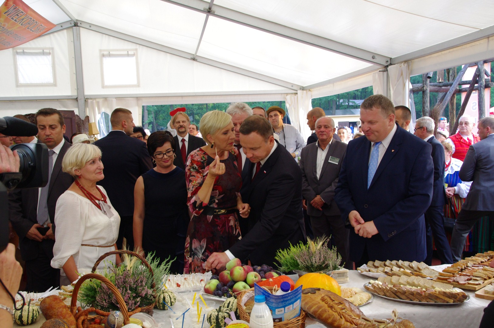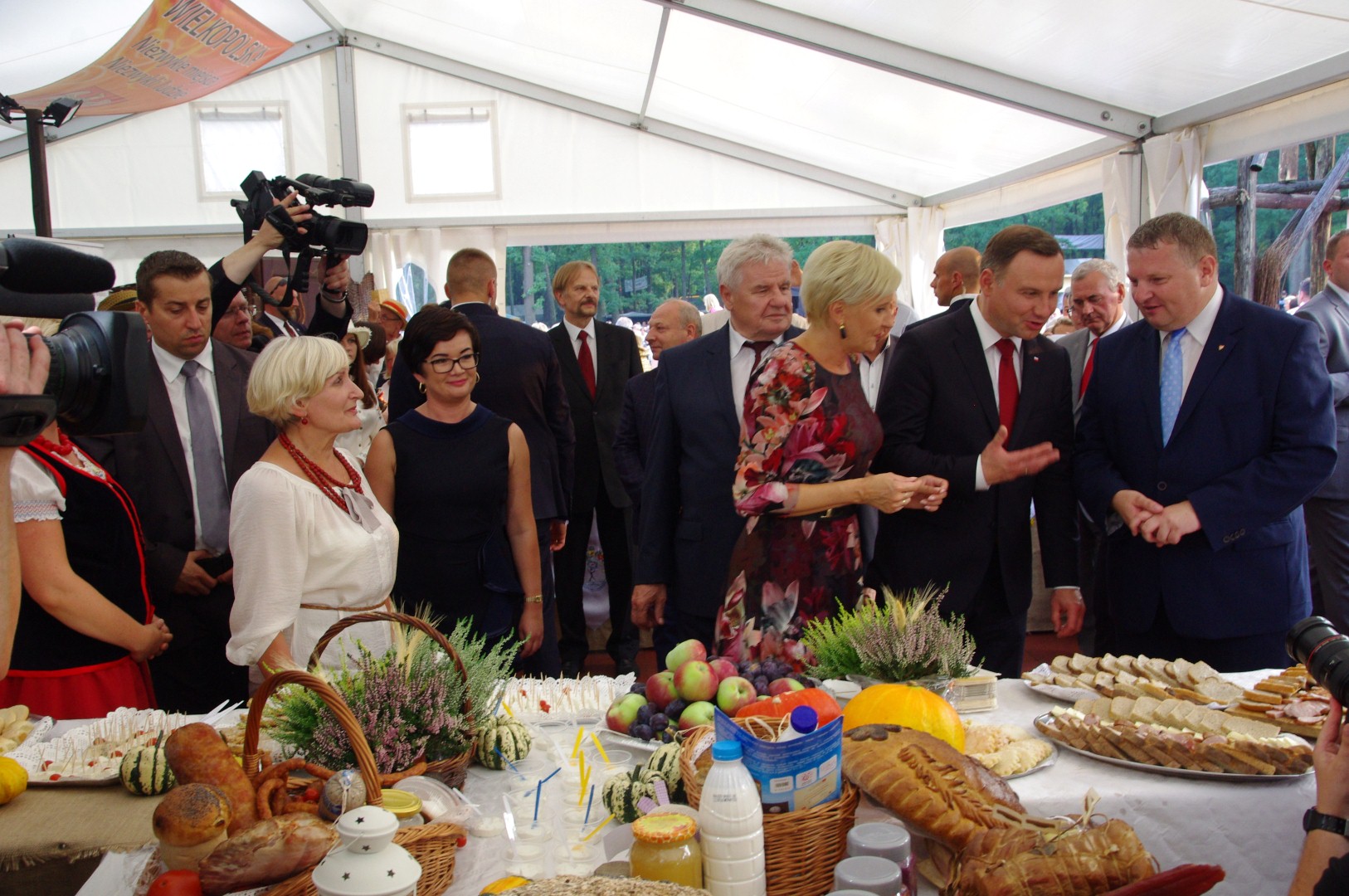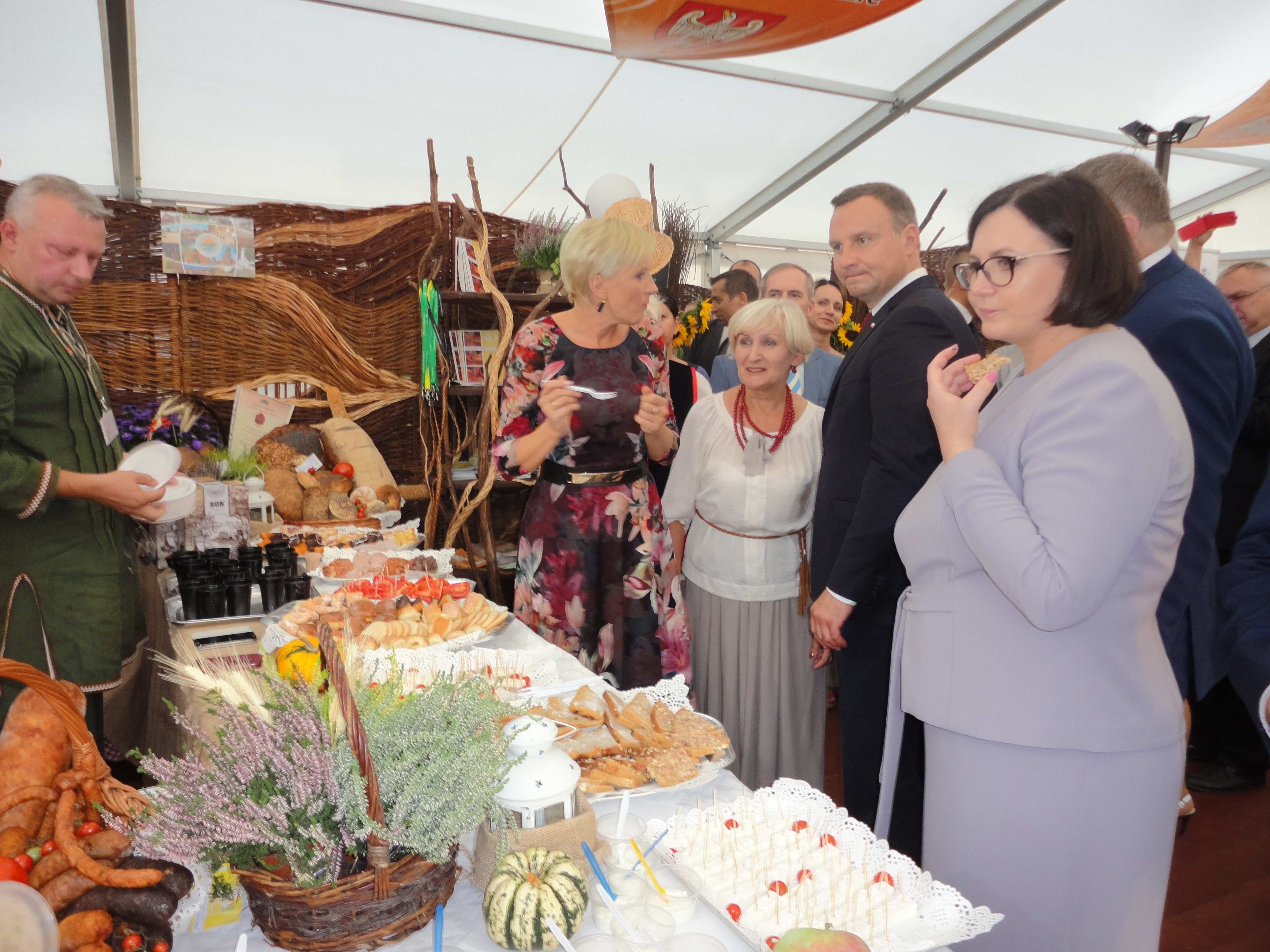Na stadionie ceremoniał dożynkowy przygotował Zespół Pieśni i Tańca Łany, podczas niego starostowie dożynek przekazali prezydentowi chleb wypieczony z mąki pochodzących z ziaren z tegorocznych zbiorów.