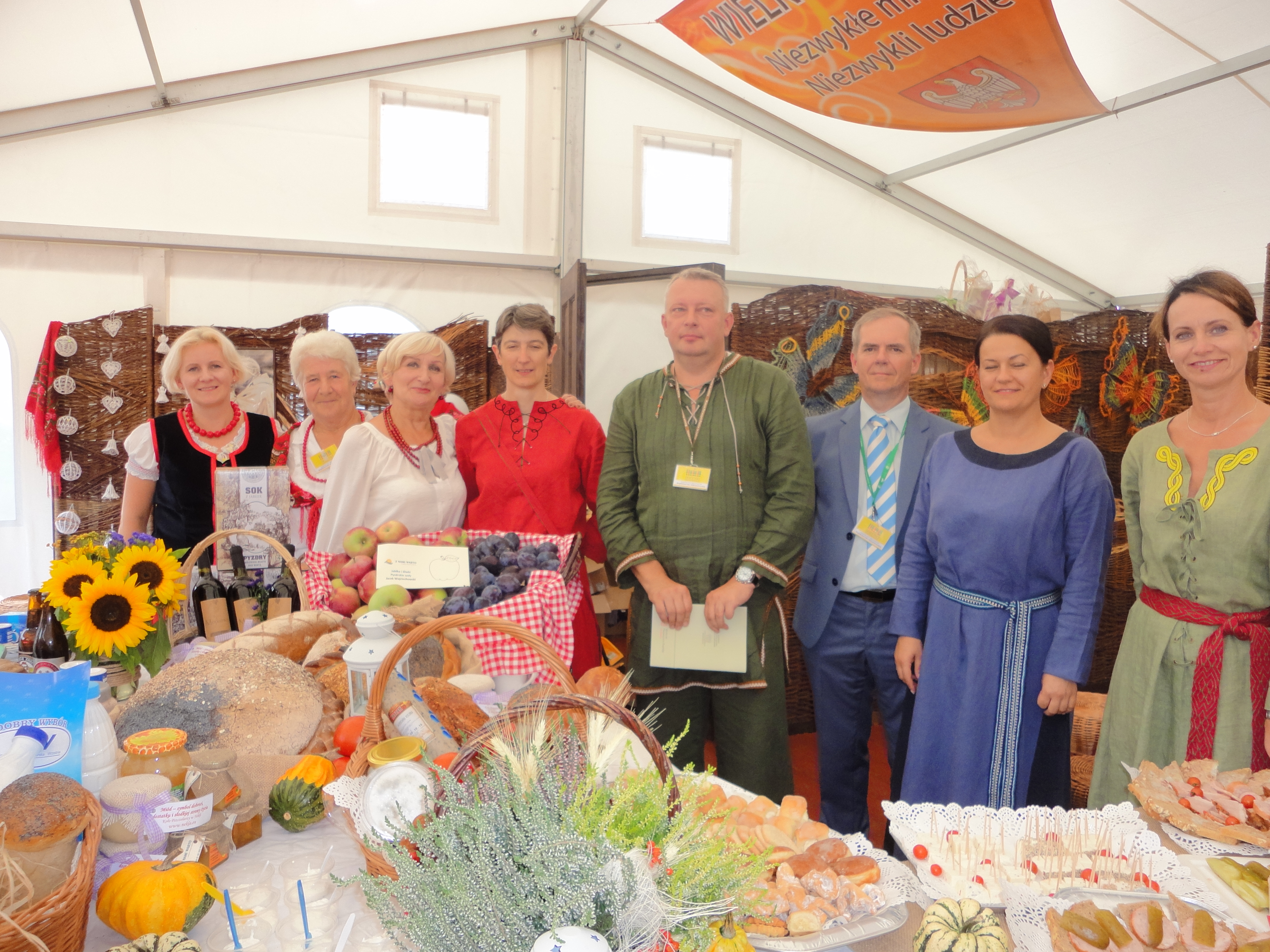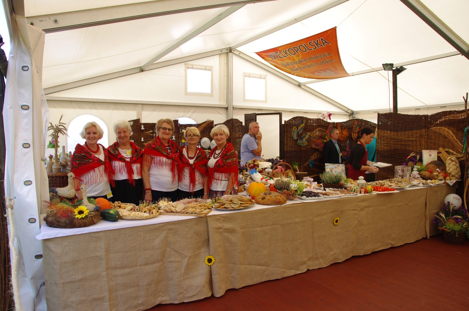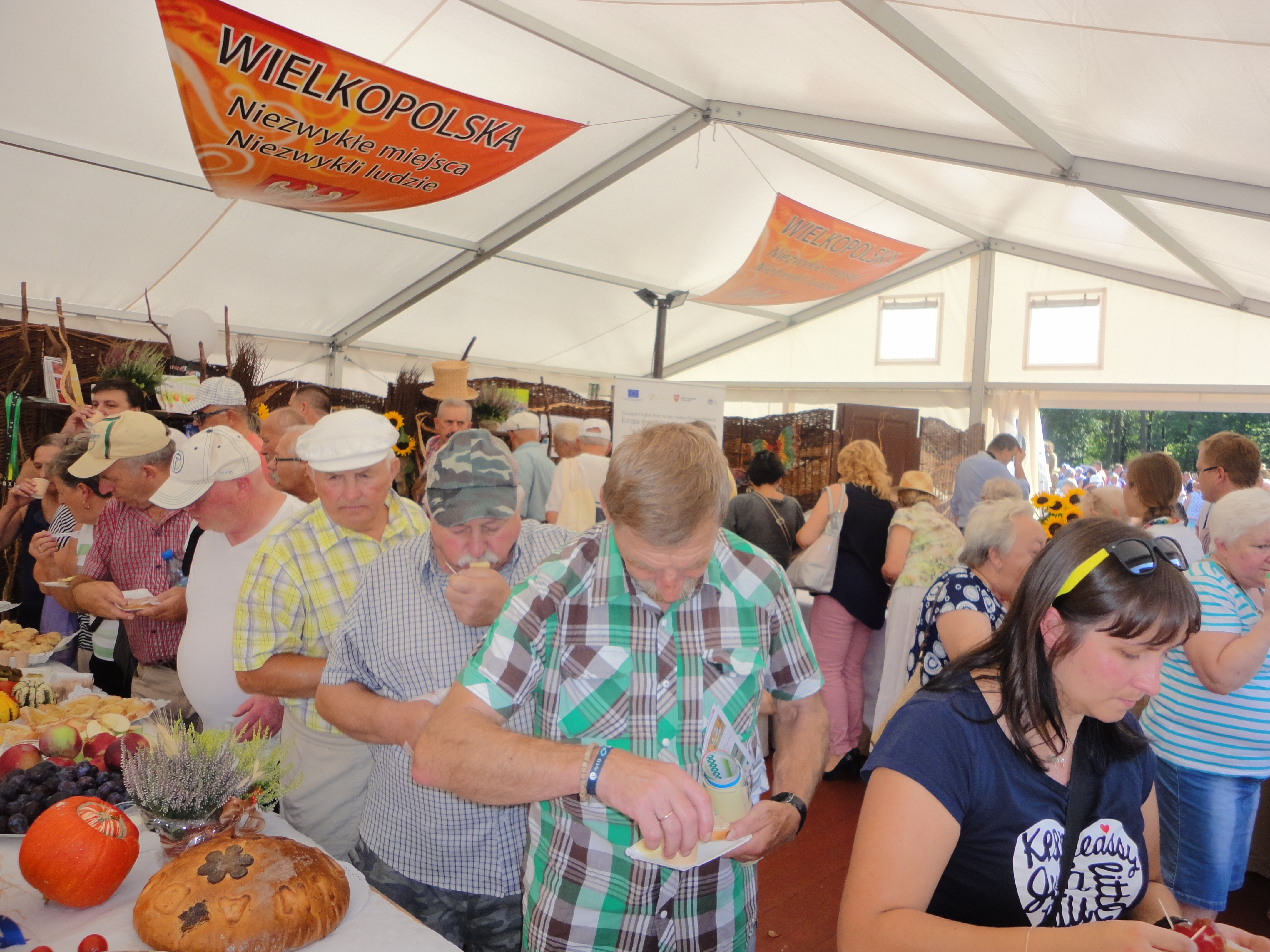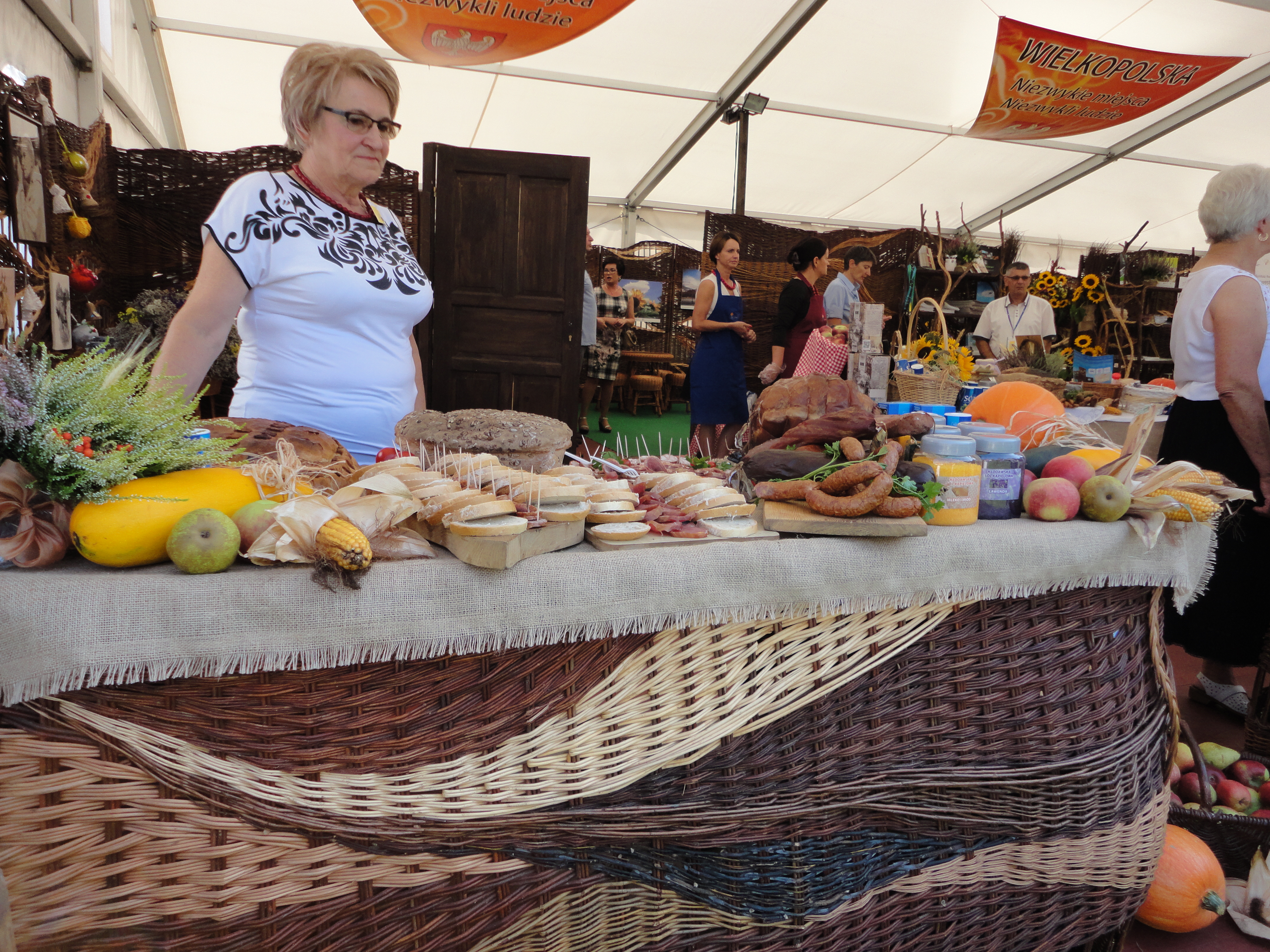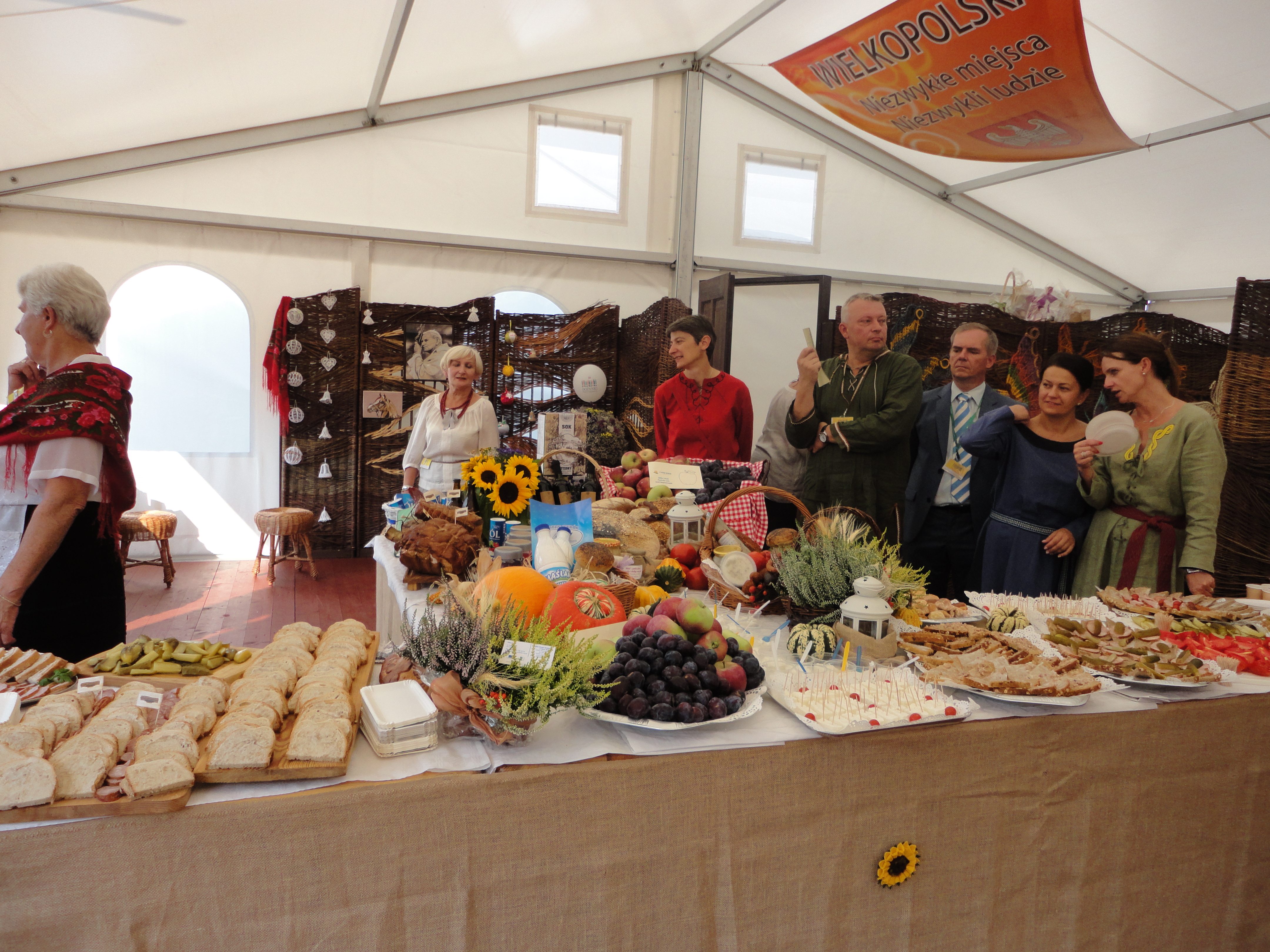 Dożynkom towarzyszyło także Miasteczko Regionów, w którym stoiska przygotowały wszystkie województwa, w tym również – wyróżniające się bogactwem smaków i ilością produktów regionalnych – województwo wielkopolskie. Na stoisku Wielkopolski nasze stowarzyszenie dzięki uprzejmości i zaangażowaniu wielu osób mogło pochwalić się dorobkiem kulturalnym i kulinarnym naszego obszaru.