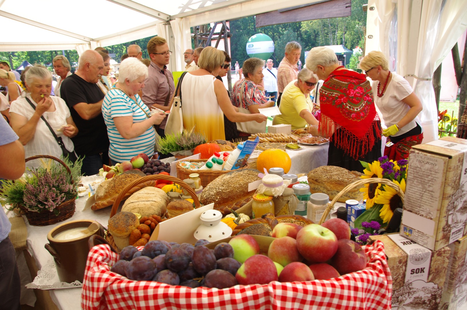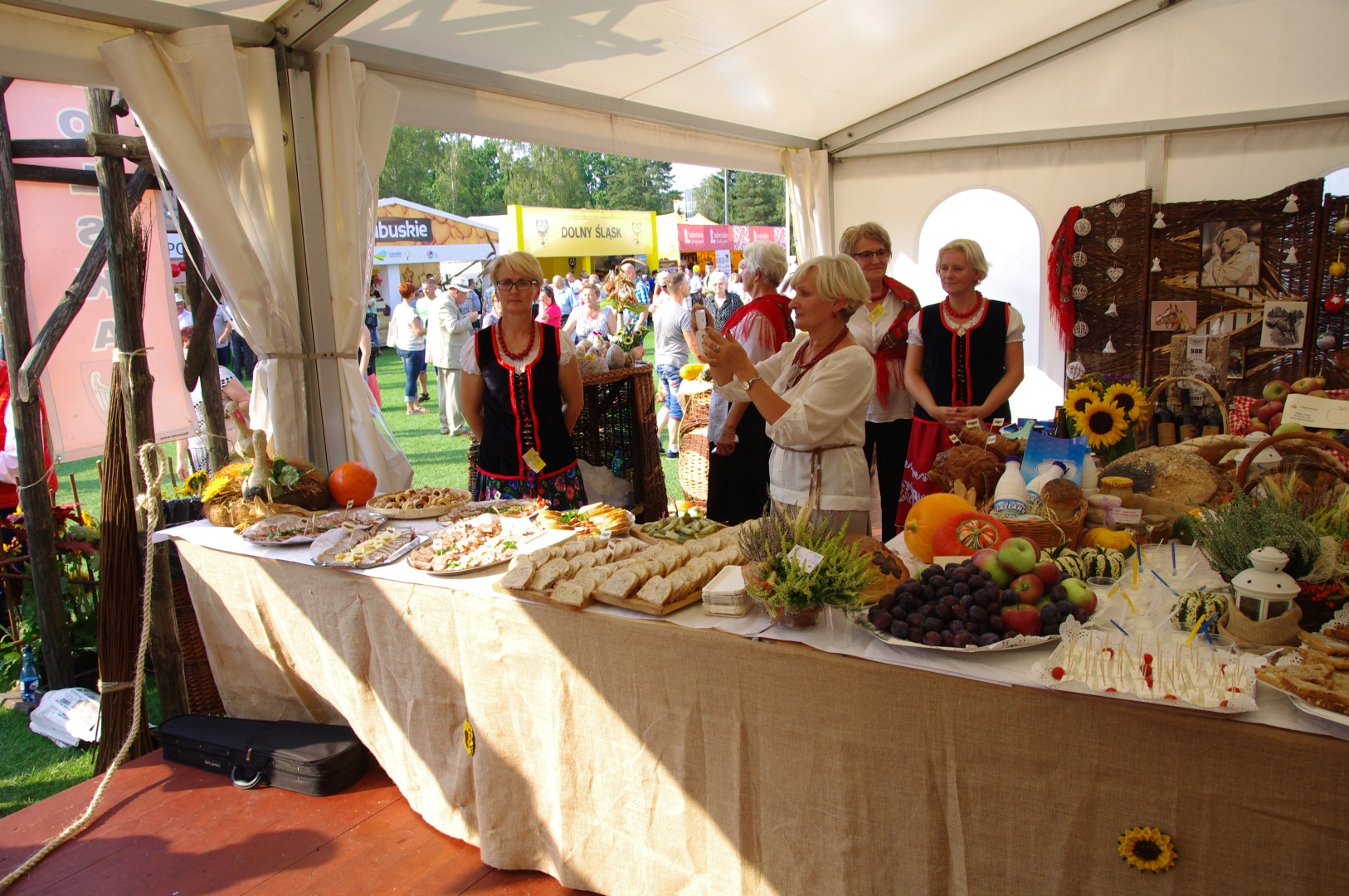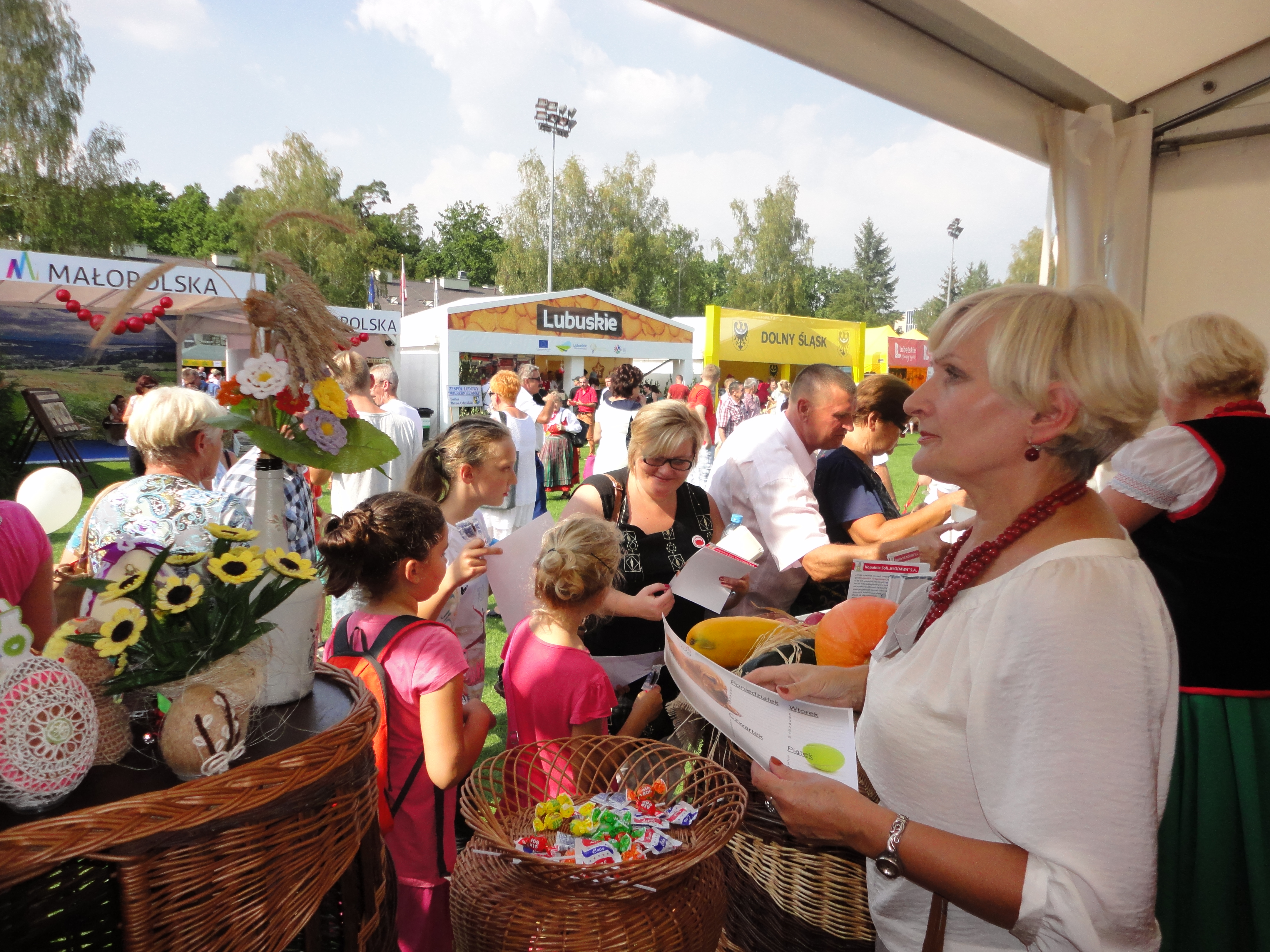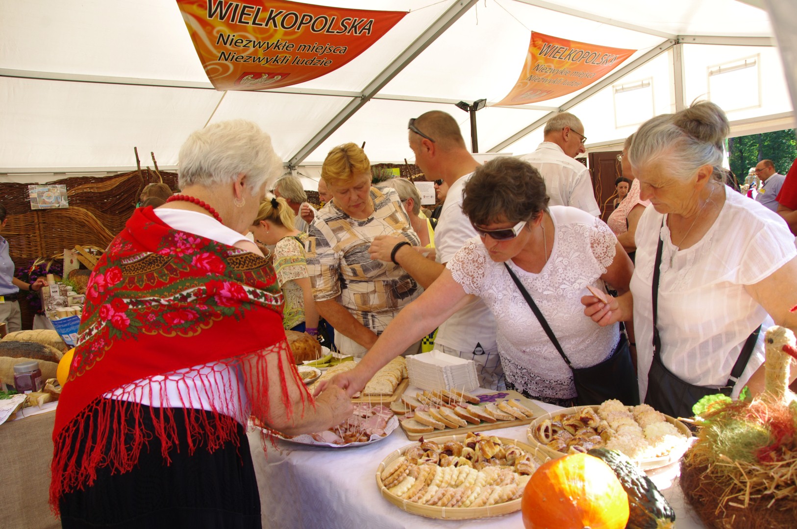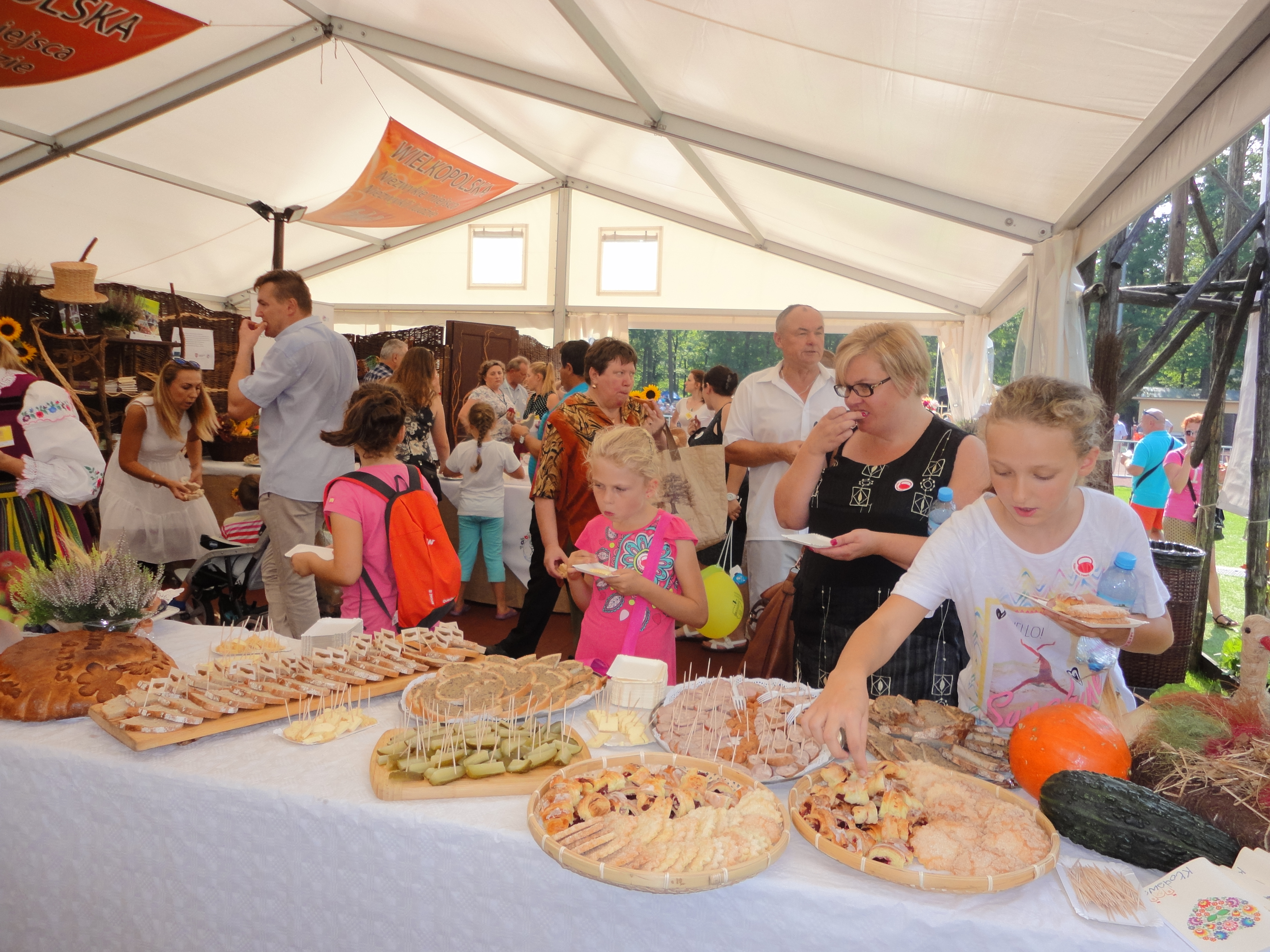 Dożynkom towarzyszyło także Miasteczko Regionów, w którym stoiska przygotowały wszystkie województwa, w tym również – wyróżniające się bogactwem smaków i ilością produktów regionalnych – województwo wielkopolskie. Na stoisku Wielkopolski nasze stowarzyszenie dzięki uprzejmości i zaangażowaniu wielu osób mogło pochwalić się dorobkiem kulturalnym i kulinarnym naszego obszaru.