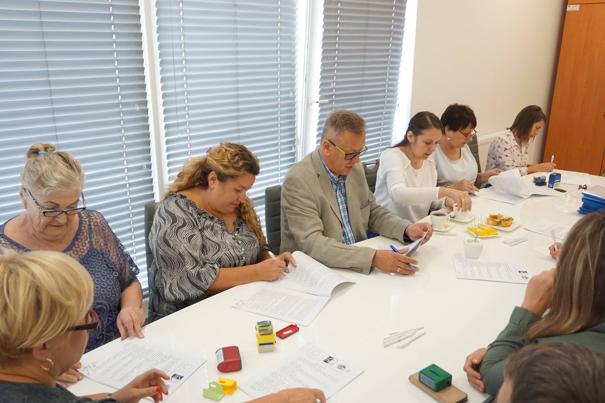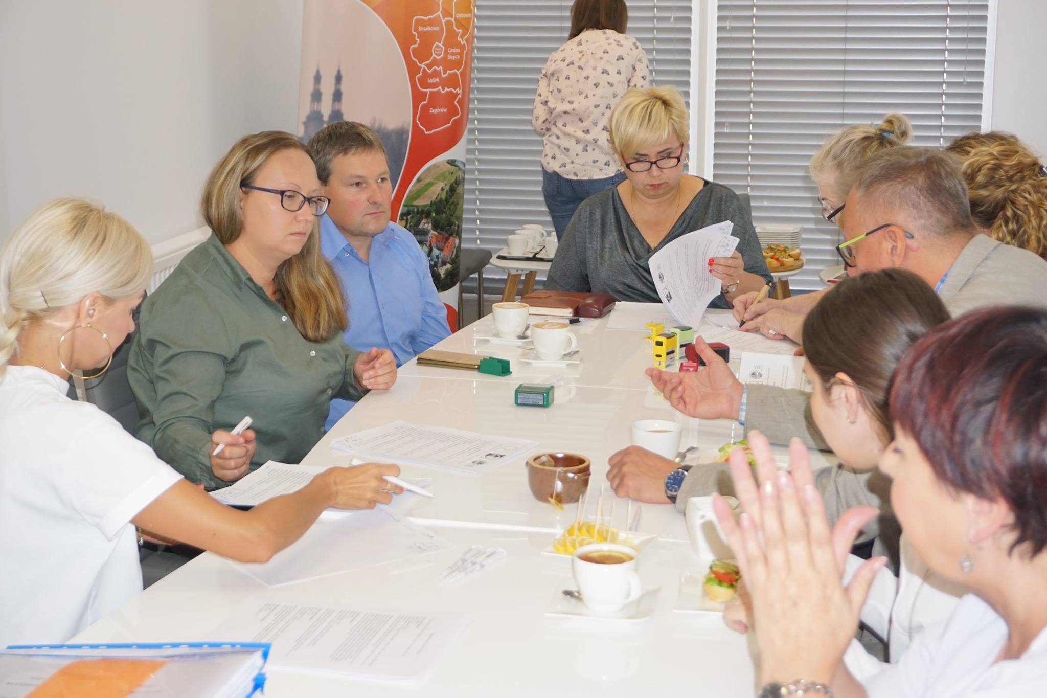 Przedstawiciele pięciu Lokalnych Grup Działania: Stowarzyszenia „Solna Dolina”, „Solidarni w Partnerstwie”, Unia Nadwarciańska, „Wielkopolska Wschodnia” oraz Między Ludźmi i Jeziorami, w dniu 06 września 2018 r., w Słupcy podpisali umowę, której przedmiotem jest: dostawa i montaż na obszarze pięciu partnerskich LGD: 44 wiat przystankowo – rowerowych krytych gontem, wyposażonych w stół i ławy, 44 tablic ogłoszeniowych z daszkiem, 44 stojaków na rowery oraz 44 koszy drewnianych.
