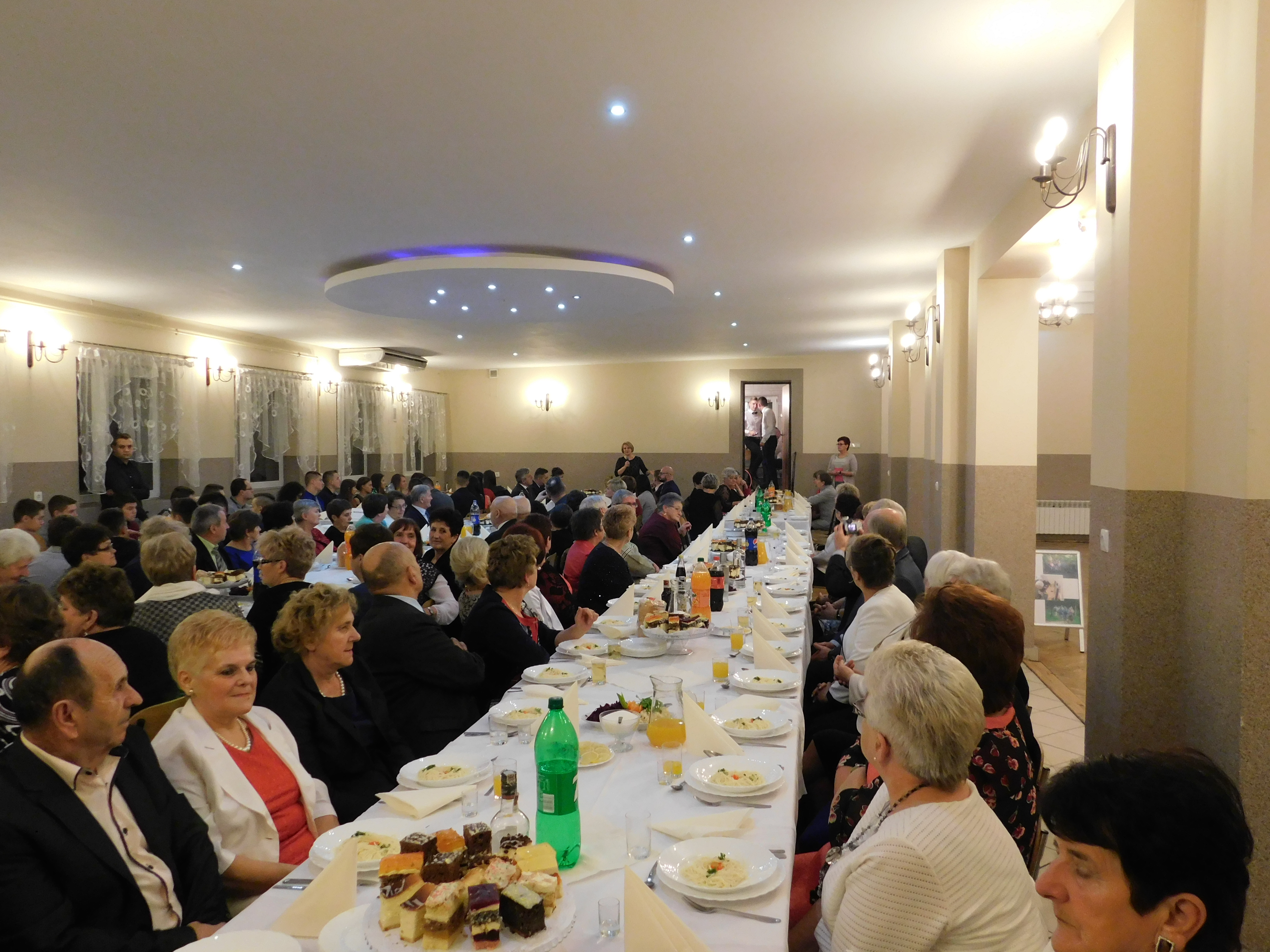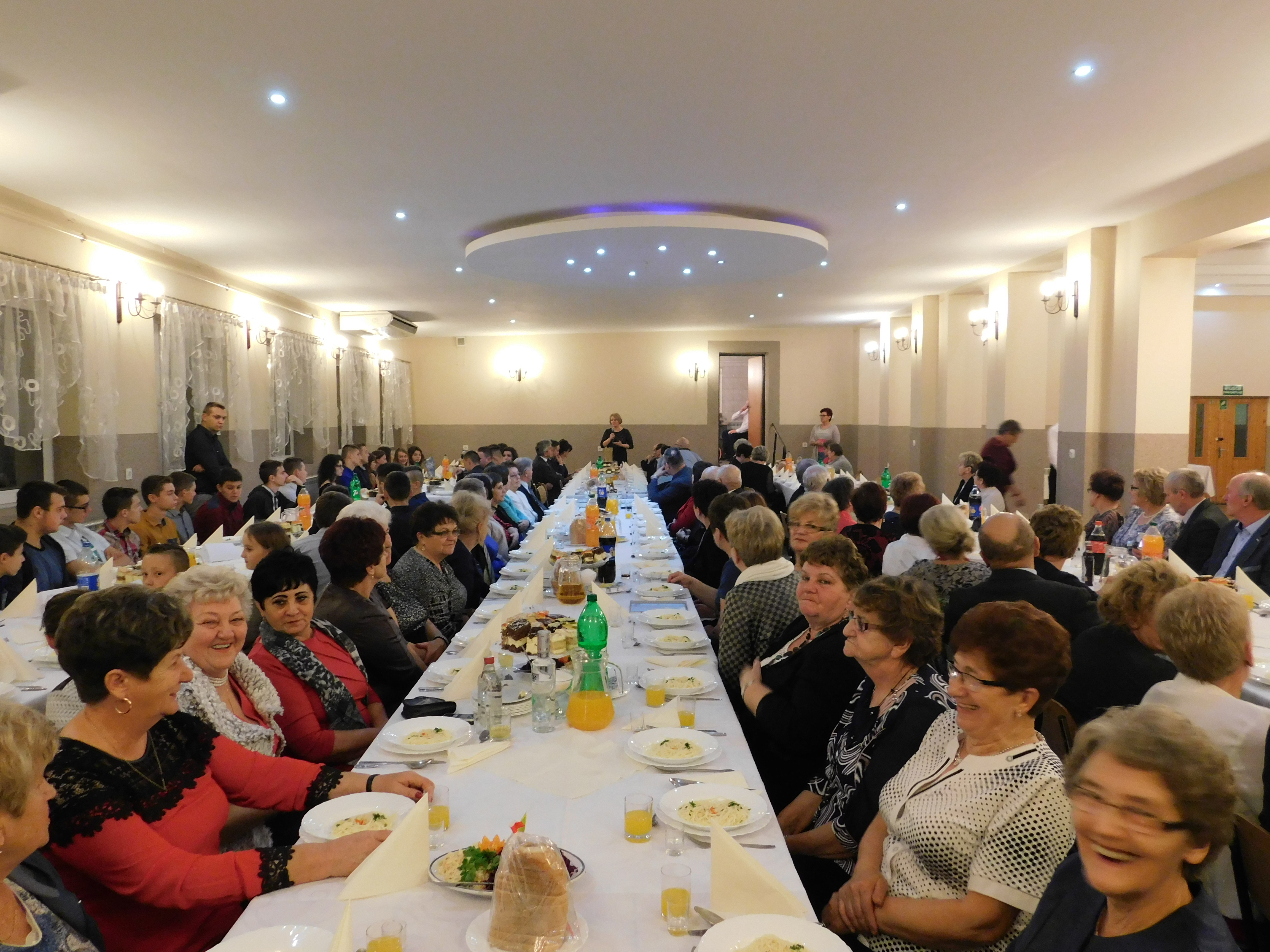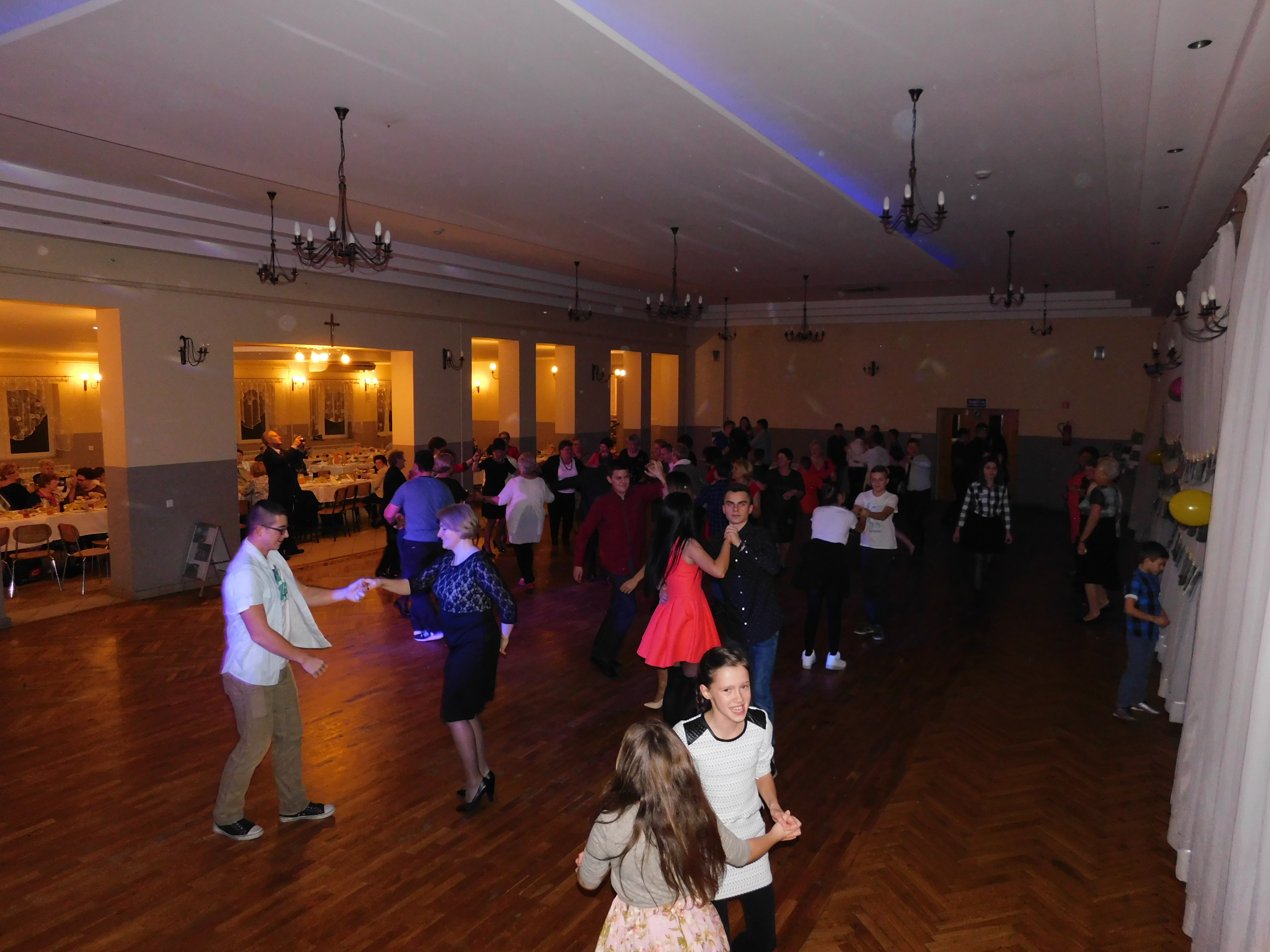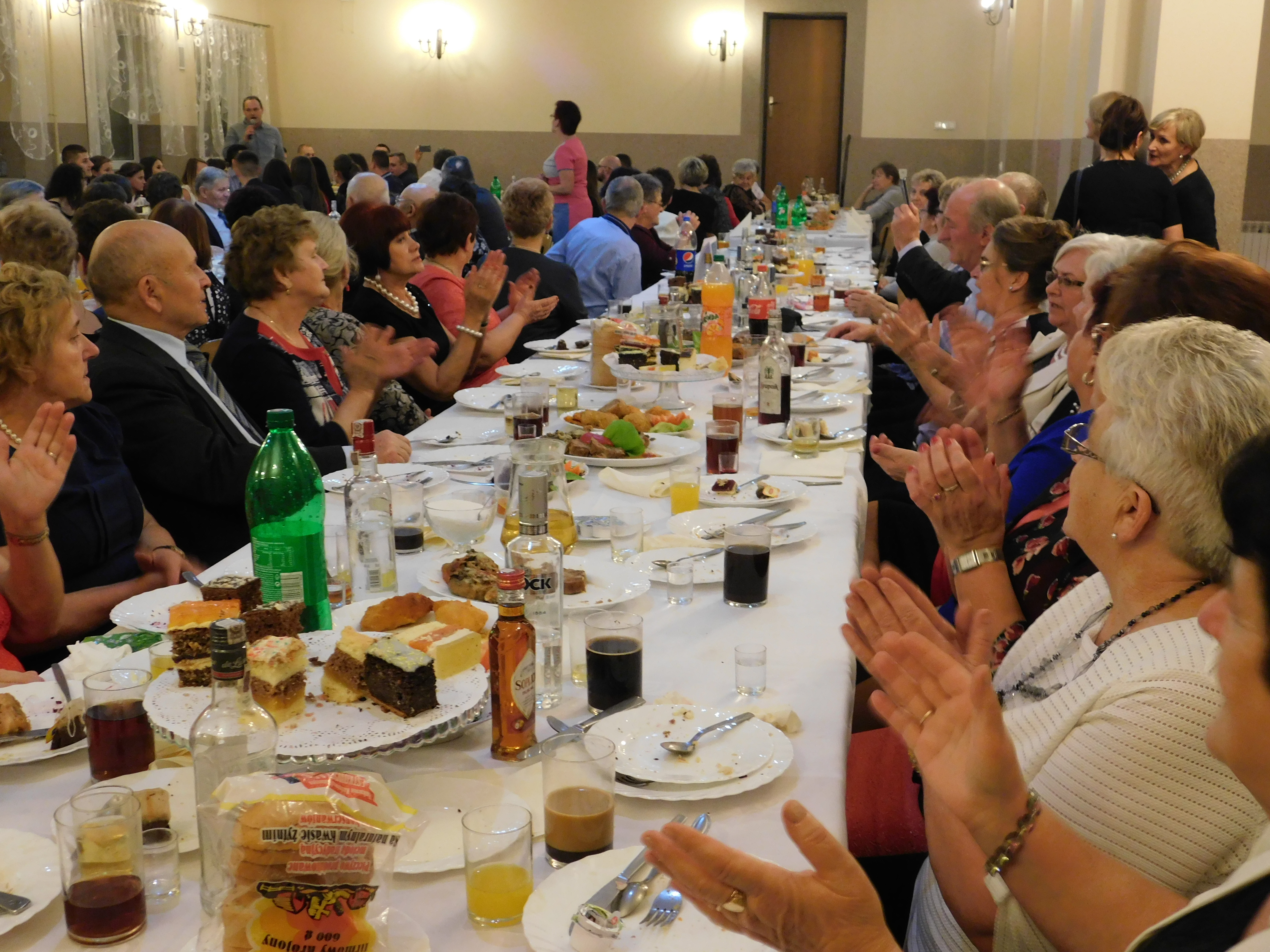 Po części oficjalnej seniorzy i młodzież do późnych godzin wieczornych bawili się wspólnie przy akompaniamencie zespołu biesiadnego, który towarzyszył zabawie integracyjnej.